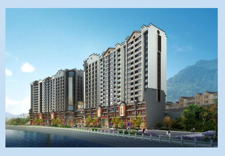 项目概况:本项目总面积 81285平方米,为雅安市宝兴县两河口沙湾商业综合体。